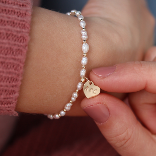 Timeless Bond Pearl Bracelet with Personalised Heart Charm