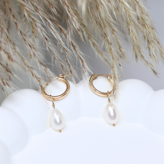 Our gold pearl earrings bring warmth, richness, and a glow that flatters every skin tone.