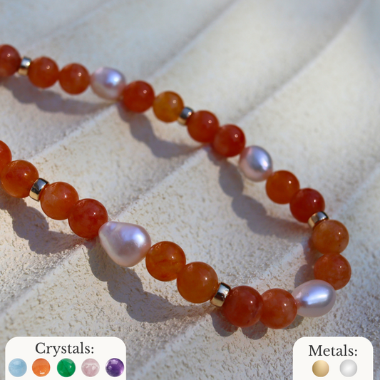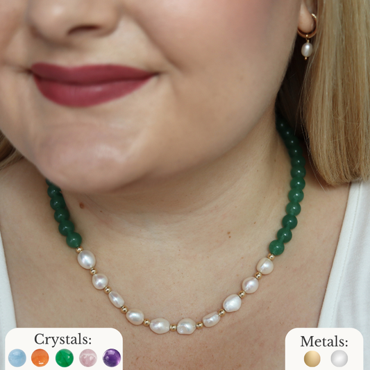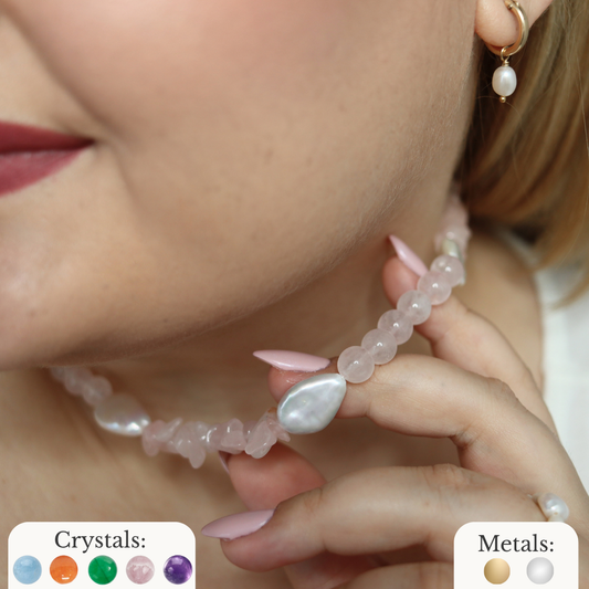 A radiant fusion of healing crystals and freshwater pearls. Each piece tells a story of intention, energy, and personal style.