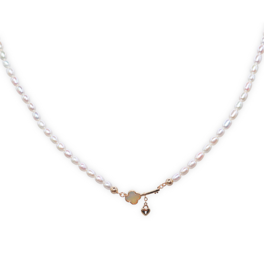 Juliette Key and Heart Locket Pearl Necklace