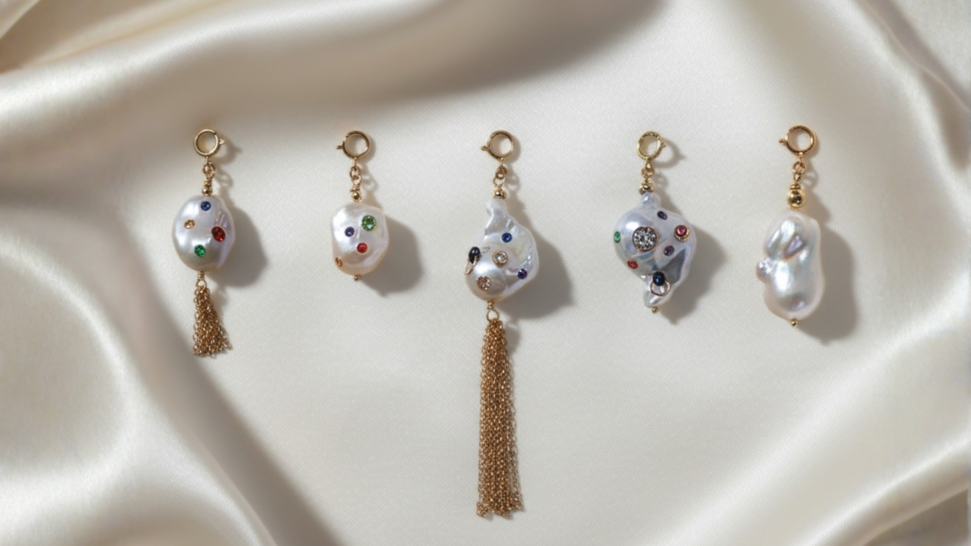 Gemmelle Baroque Tassel Bejeweled Pearl Charm with Clasp