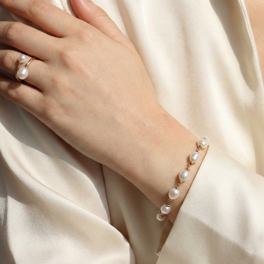 We work exclusively with genuine, oyster-formed freshwater pearls, cultured with care and selected for their high lustre, surface quality, and durability. These pearls are sourced from trusted suppliers in Asia and are never synthetic or imitation.