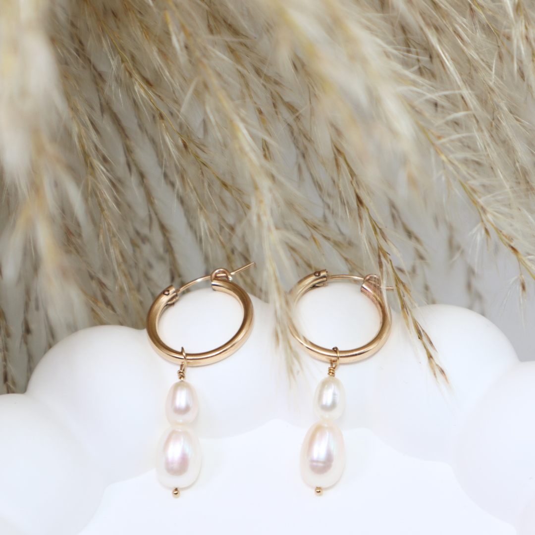 Ella 2 in 1 Double Pearl Hoop Earrings