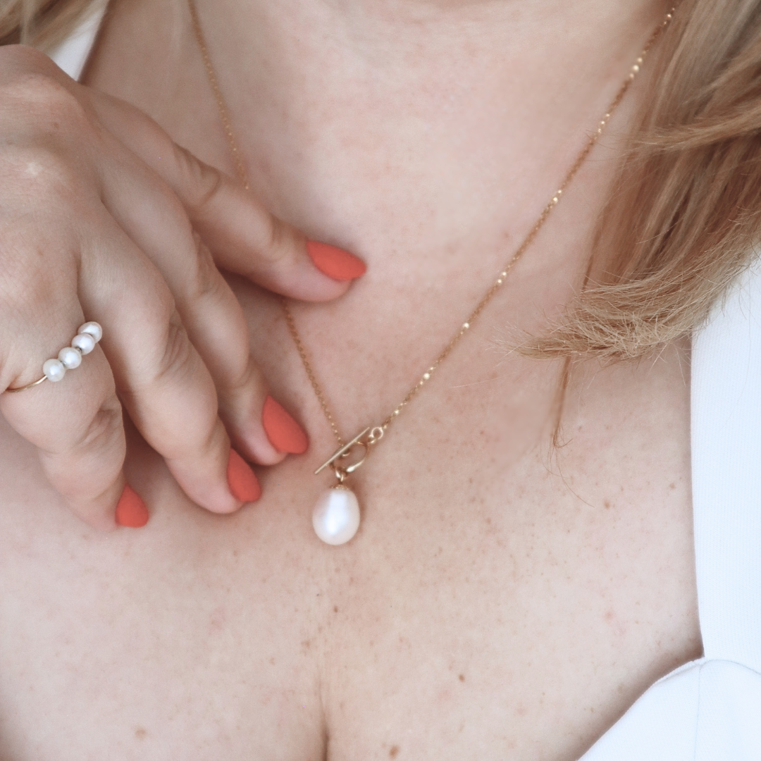All Emmrelle pieces are handcrafted using high-quality, genuine freshwater pearls and 14k Gold Filled or 925 Sterling Silver accents. Read more about our chosen metals here.