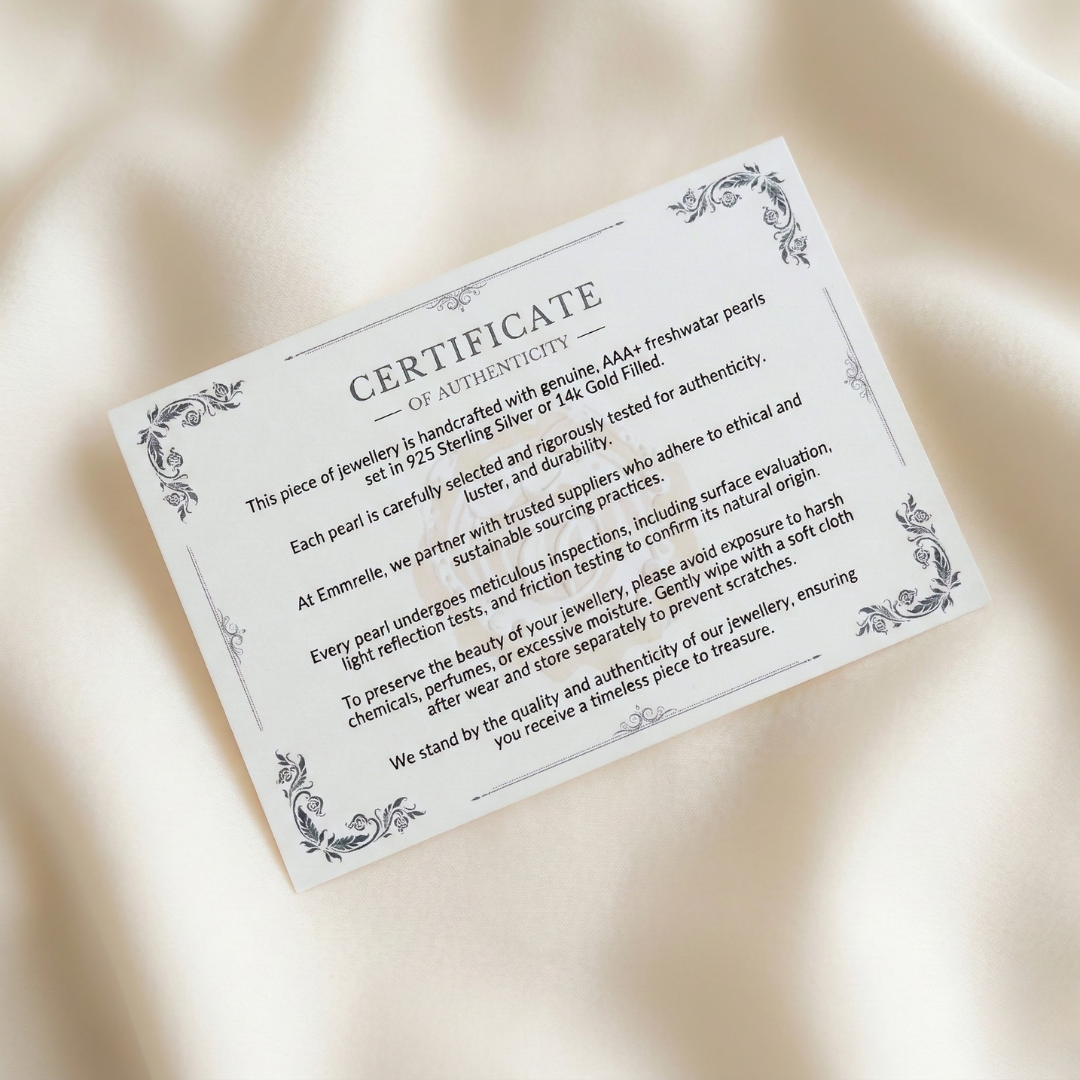 At Emmrelle, we take pride in crafting timeless pearl jewelry with genuine, high-quality pearls set in 925 sterling silver or 14k Gold Filled. Every piece is carefully selected, ethically sourced, and rigorously tested for authenticity, luster, and durability.