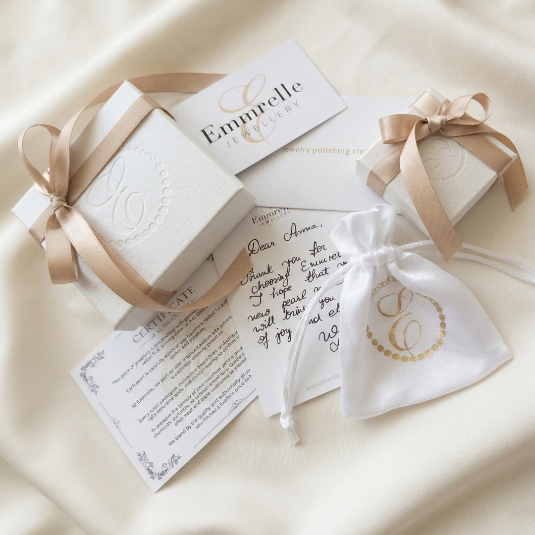 Experience the joy of unboxing Emmrelle. From our signature giftwrapping to the timeless beauty of pearls, see how our jewelry arrives, ready to be cherished.