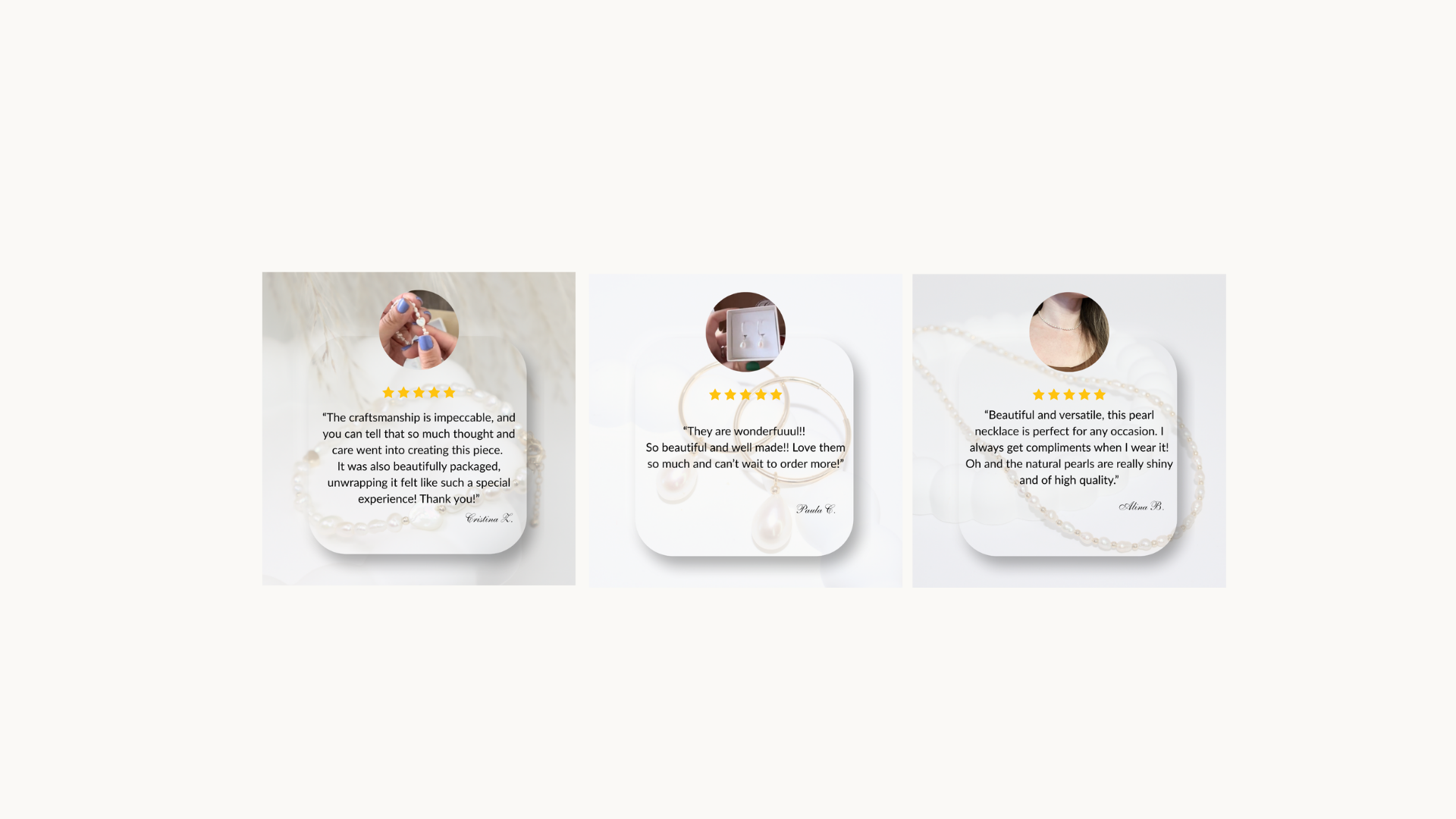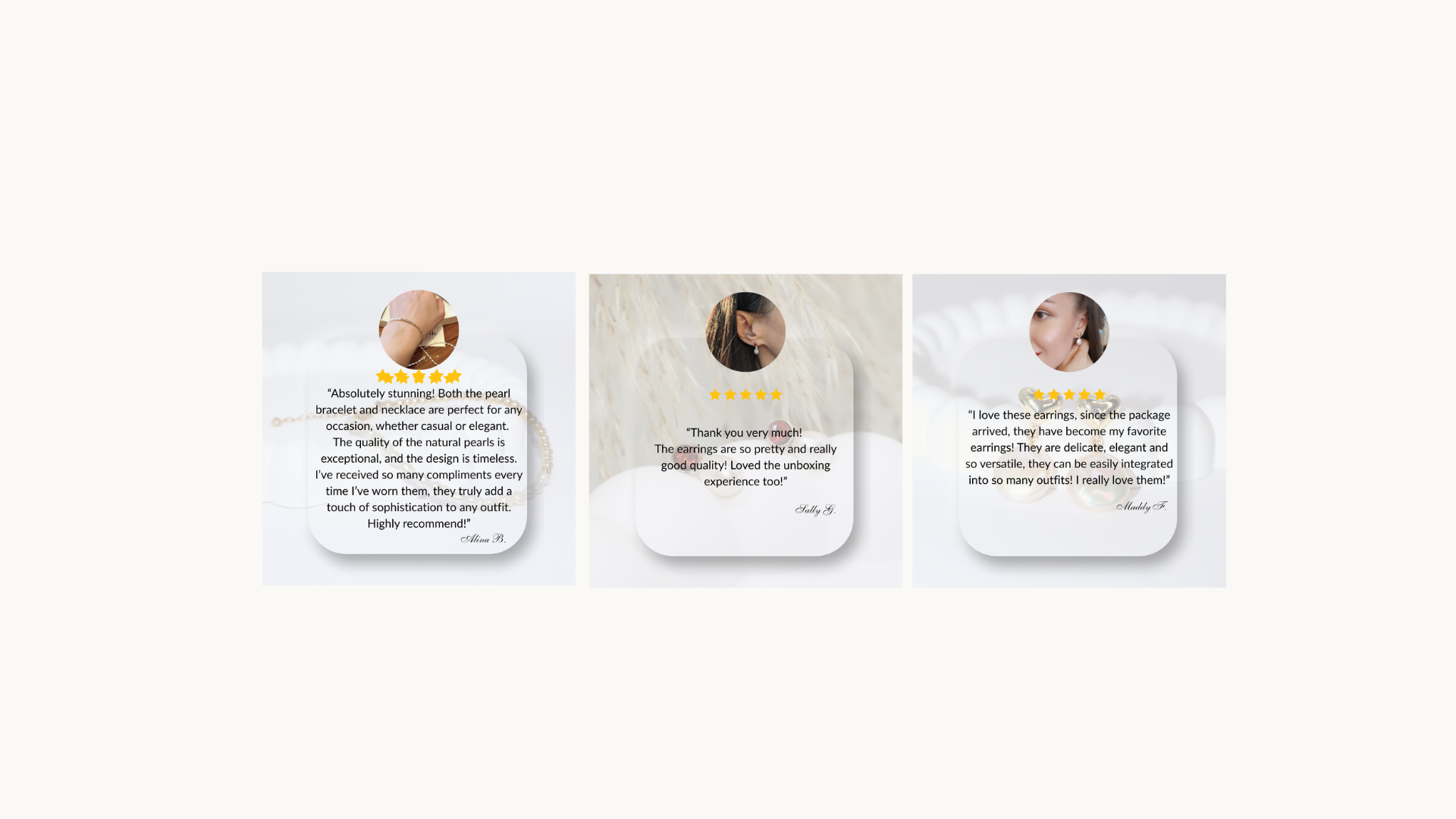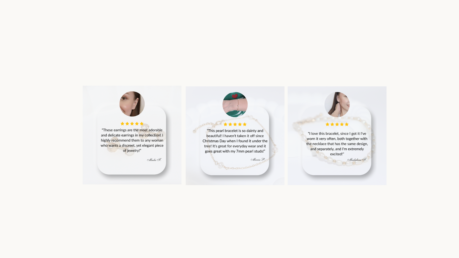 I bought these pearl studs and bracelet to go with a necklace I already own and I must say I'm impressed with the quality and attention to details! The packaging was lovely and the handwritten note is so thoughtful!